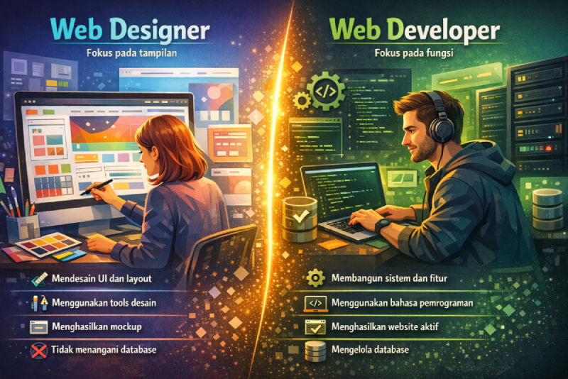 Banyak orang mengira web developer dan web designer adalah profesi yang sama. Padahal, keduanya memiliki peran yang berbeda dalam proses pembuatan website. Memahami perbedaan ini penting agar Anda dapat memilih tenaga profesional yang tepat sesuai kebutuhan proyek Anda.