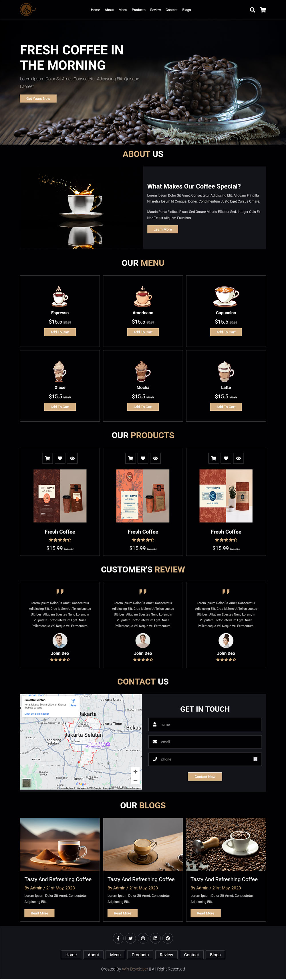 Tertarik menciptakan landing page yang menarik dan atmosferik seperti ini untuk coffee shop Anda? Request demo melalui link yang tersedia, dan saya siap membantu Anda mewujudkan tampilan yang unik dan berkesan!